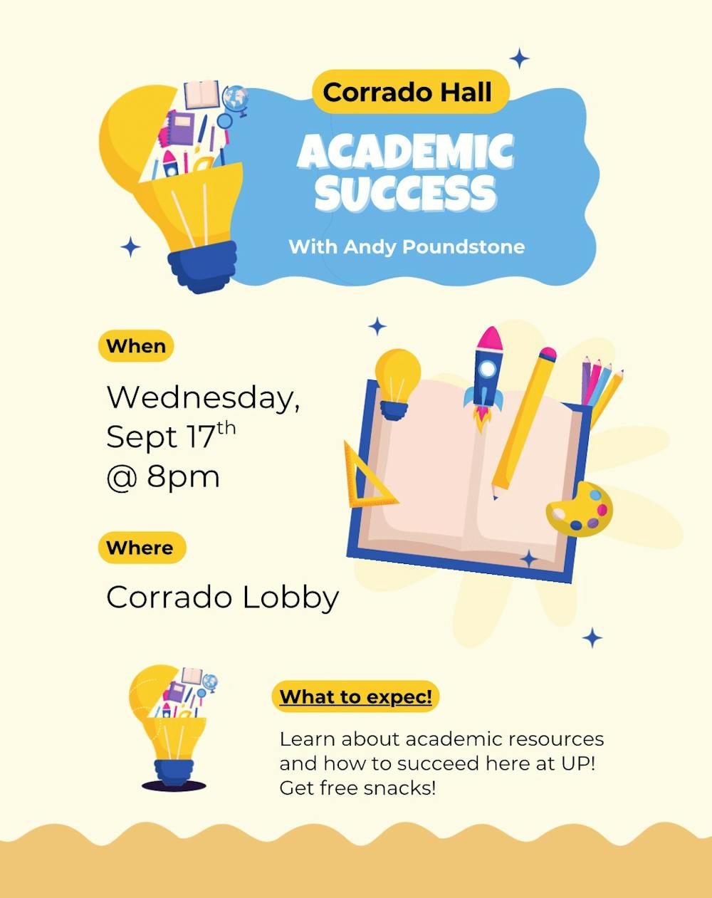 Associate Director for Academic Support Andy Poundstone gave a presentation titled “Academic Success in Space and Time” to Corrado residents. The presentation incorporated tips for academic success into a light-hearted game of Family Feud.