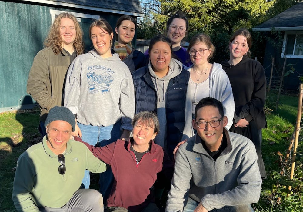Students pose after helping Catholic workers with gardening tasks and sharing a meal during the Urban Immersion in Milwaukie, OR, January 2025. Photo courtesy of Erin Savoia.