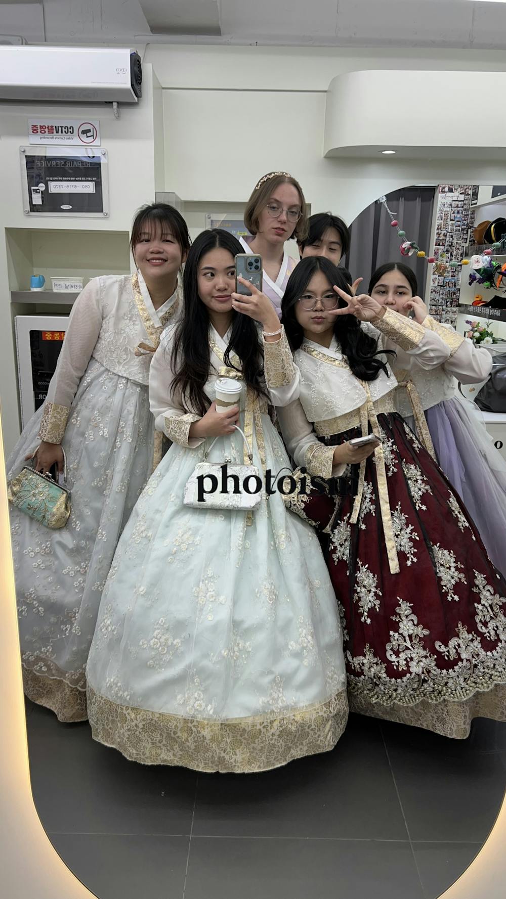 Mya Nguyen and her friends pose for a photo wearing traditional Korean hanbok. Photo courtesy of Mya Nguyen.