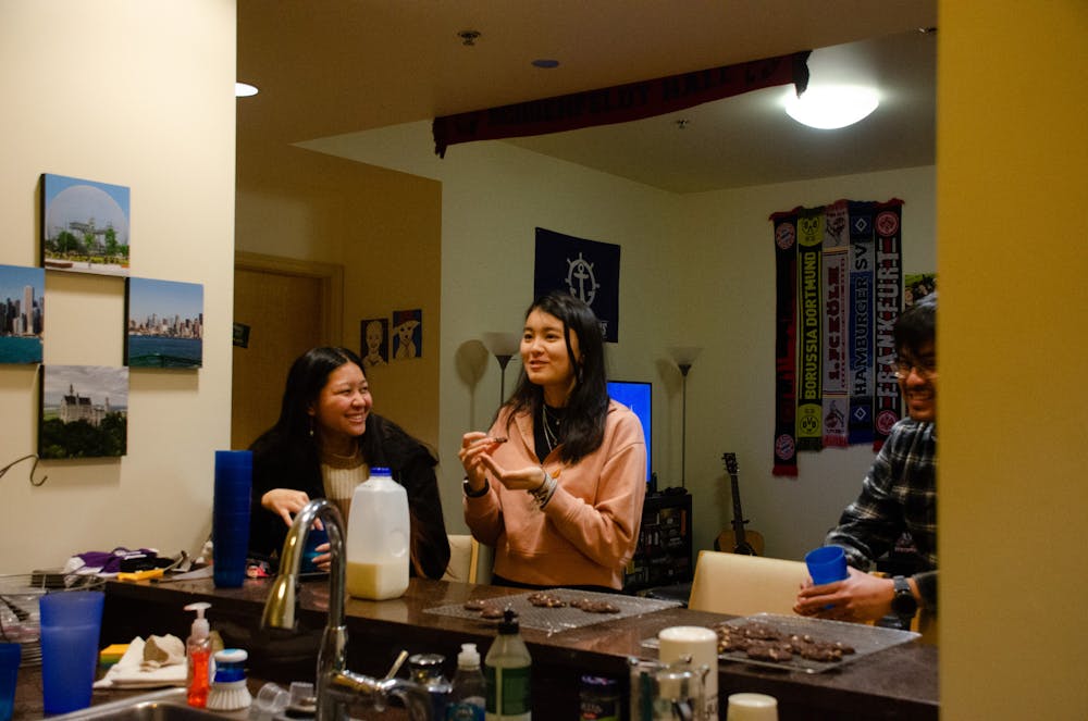 Students eat cookies baked by Hall Director Jordan Duran. Media Credit: Michaela Gold / The Beacon