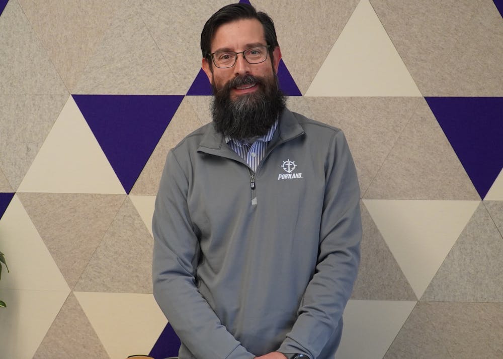 Max Kalchthaler, Assistant Director, Career Advising & Program Manager, in UP Career Center Franz 110. Media Credit: Lexi Buckner / The Beacon