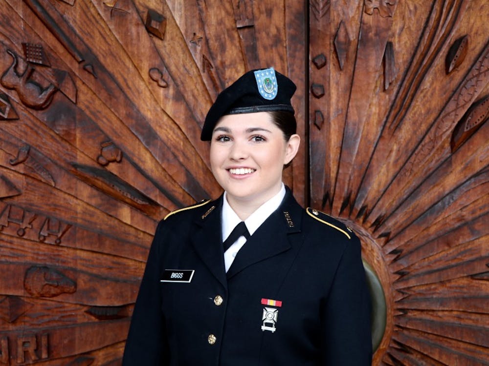 Any given time on a Tuesday, Pilots can spot men and women in a pristine blue uniform marching along to their classes.